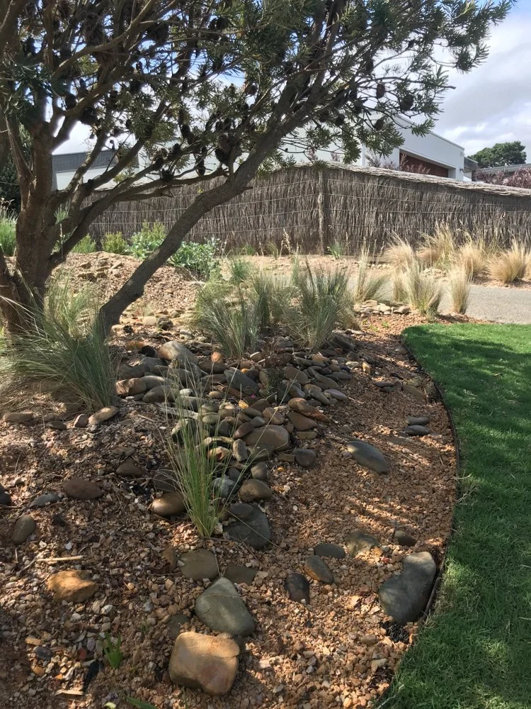 The Design looked at creating a densely planted Australian native garden that provided a space for wildlife and the needs of a young, active family. Plant selection included plants indigenous to the Western plains and Otway foothills alongside other local natives suitable to the local climate.
